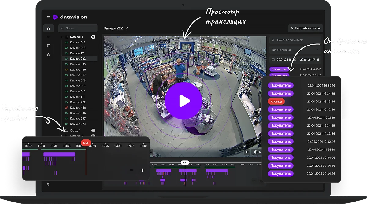 Наши системы не просто записывают видео, они анализируют происходящее. Детекция движения, распознавание лиц, подсчет объектов и даже анализ поведения — все это помогает выявить угрозы до того, как они станут критическими.